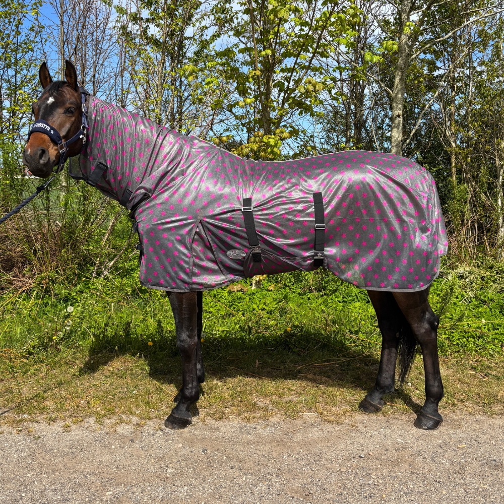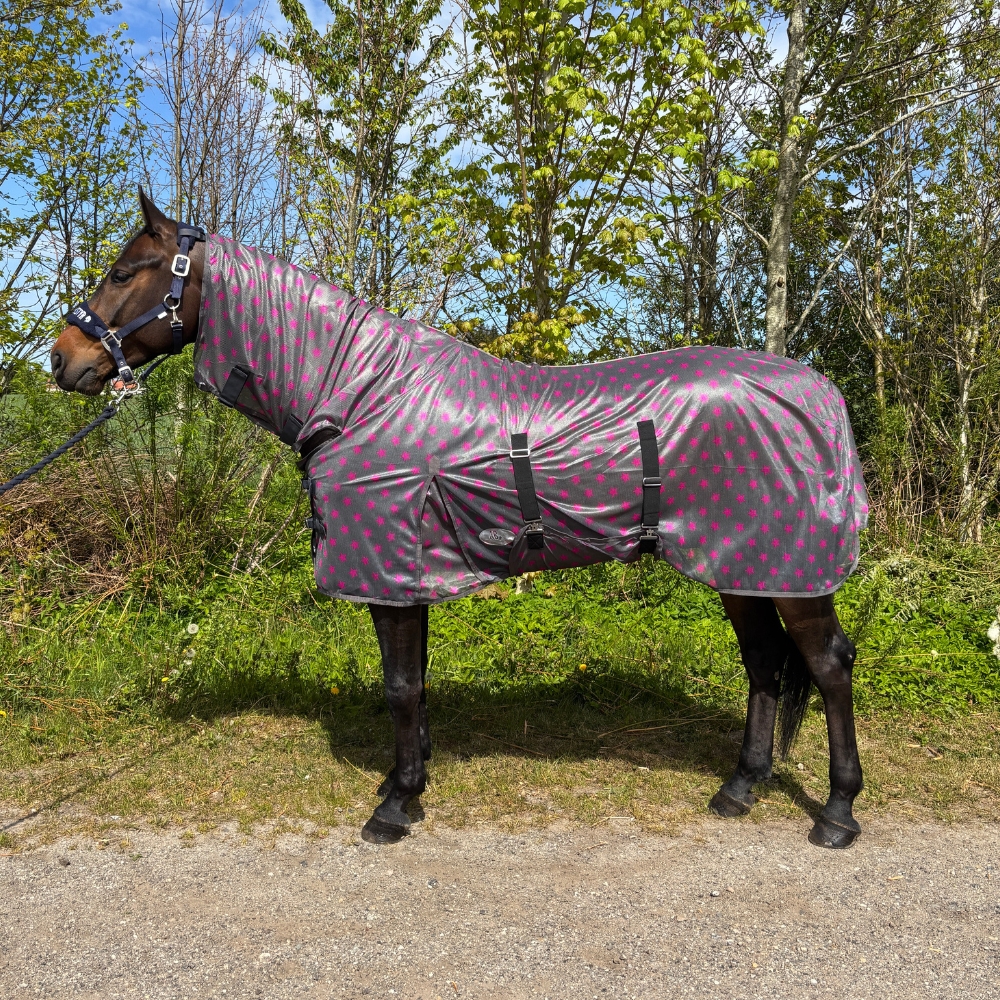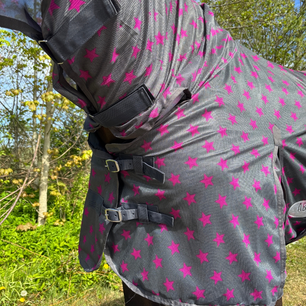 AB Colour insecten-/vliegendeken heeft nylon bij de borst voor meer comfort en ter voorkoming van slijtage. AB Colour Insectendeken is een effectieve insectendeken met vaste hals en met nylonvoering om slijtage aan de manen te voorkomen en een vaste buikflap met goede verstelbaarheid in de singels.
