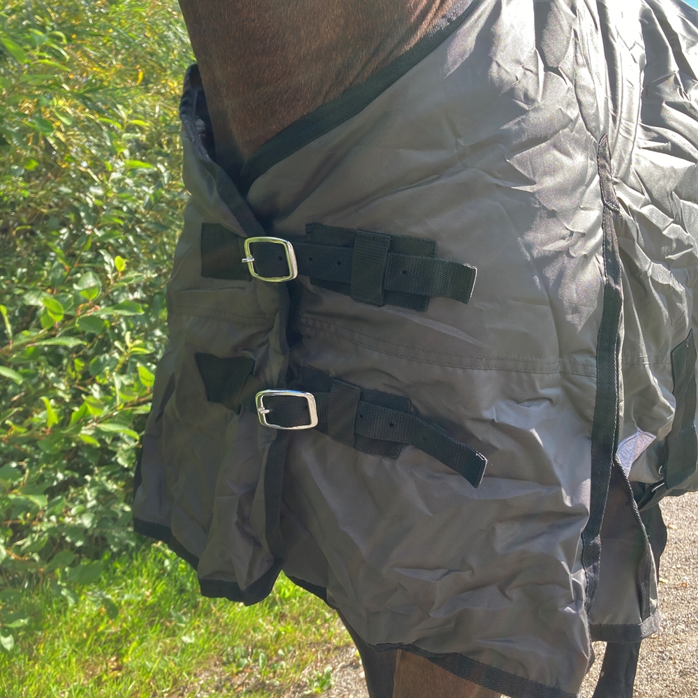 Een betaalbare en functionele overgangsdeken voor buitengebruik, ideaal voor wisselvallig weer in de lente en herfst. De deken is gemaakt van 420D polyester ripstop, heeft 150 gram vulling en is perfect voor paarden die hun dekens niet al te zwaar belasten.