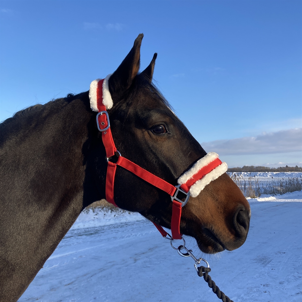 AB pluche halster met synthetisch lamswol op de nekstukken en neusriem.