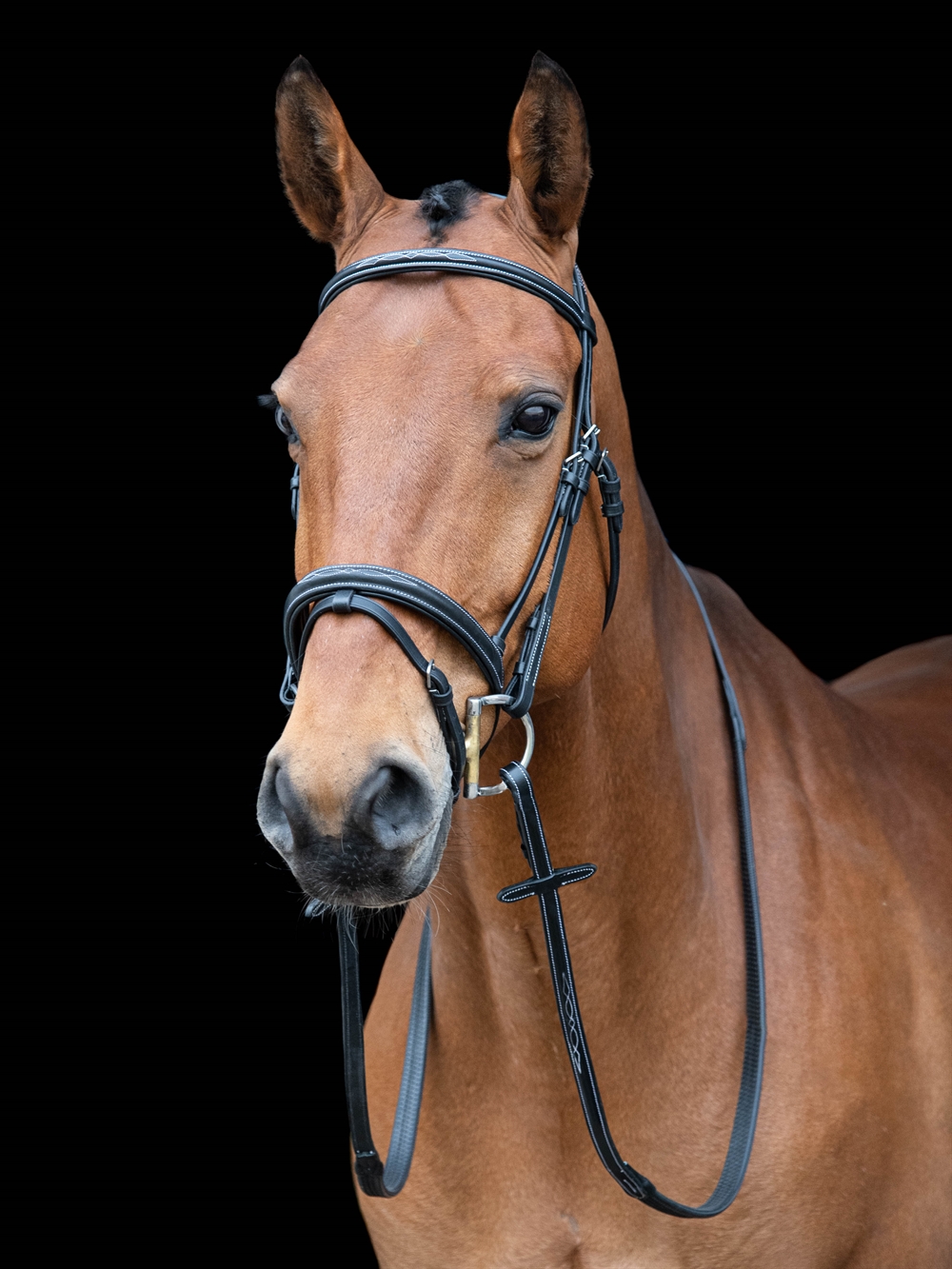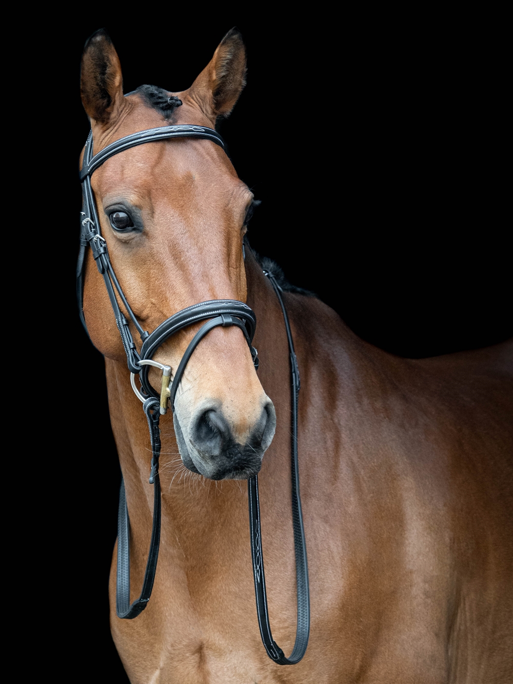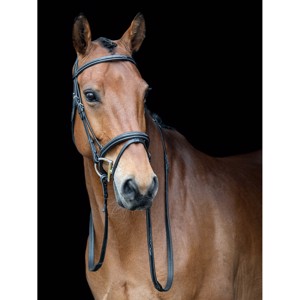 Het hoofdstel heeft een zachte voering bij de neusriem en het nekstuk.