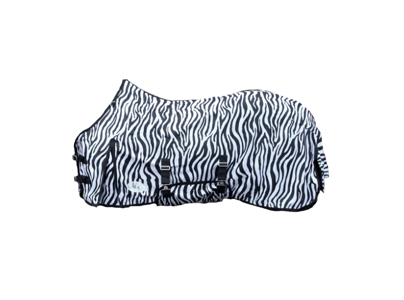 De zebradeken is een effectieve insectendeken uitgerust met buikflap en goede verstelmogelijkheden in de singels, evenals verstelbare beenriemen en staartflap.