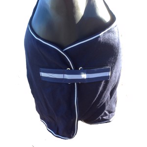 Deze prachtige, lichte wollen deken in klassiek navy met elegante contrasterende bies combineert functionaliteit en stijl. De natuurlijke temperatuurregulerende eigenschappen van wol zorgen ervoor dat het paard warm blijft zonder oververhit te raken, terwijl polyester extra duurzaamheid en vormvastheid biedt.