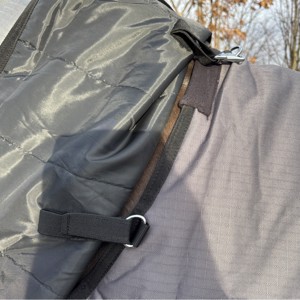 AB losse hals in 600D ribstop met 50 gram vulling en 3 bevestigingsriemen met klittenbandsluiting en elastiek voor optimaal comfort en bewegingsvrijheid.