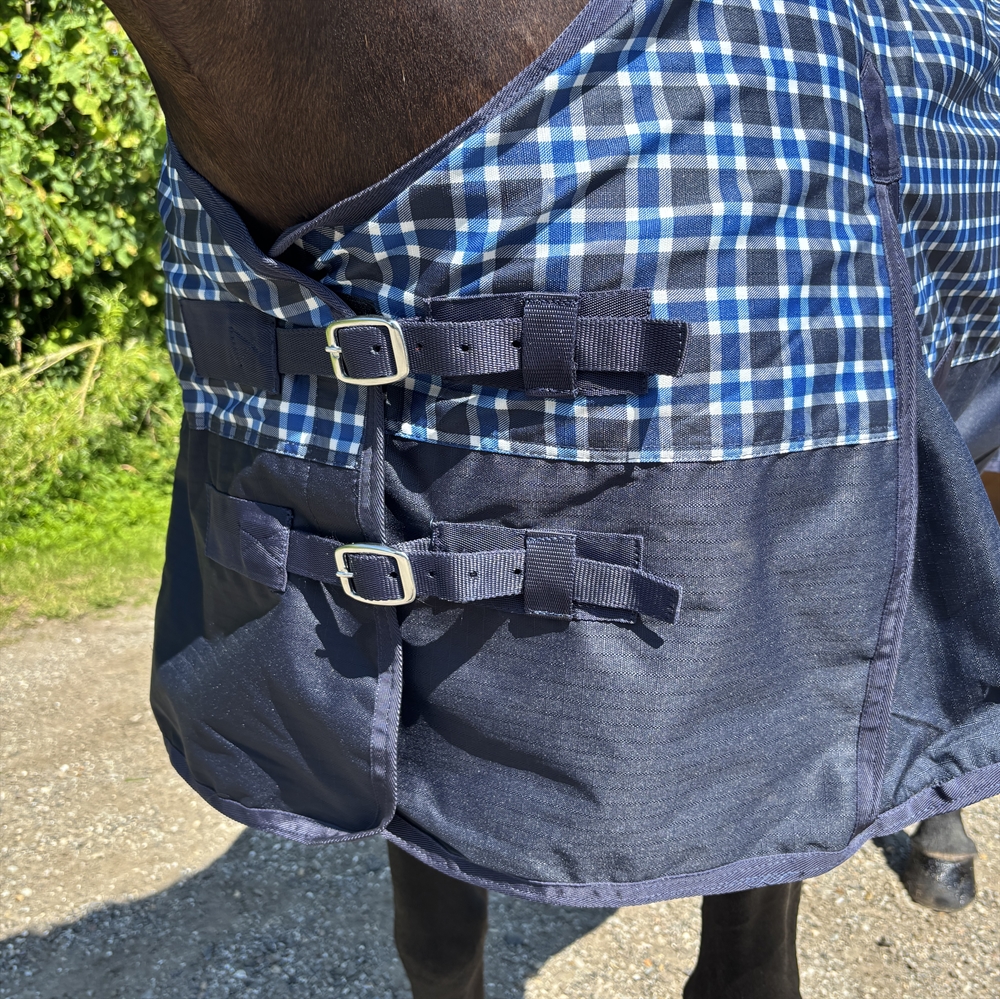 De deken is waterdicht met een waterkolom van 3000 mm en heeft een hoge ademende werking van 4000 g/m² per 24 uur, wat ervoor zorgt dat het paard droog en comfortabel blijft. Verstelbare singelriemen, afneembare beenriemen en een staartriem zorgen voor een goede pasvorm en stabiliteit. Aan de voorkant sluit de deken met een dubbele voorsluiting met gespen voor extra veiligheid.