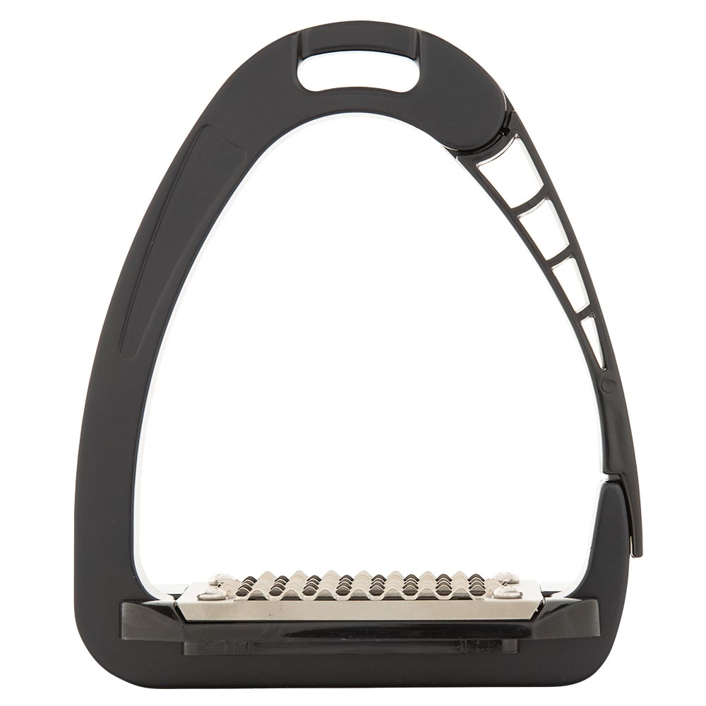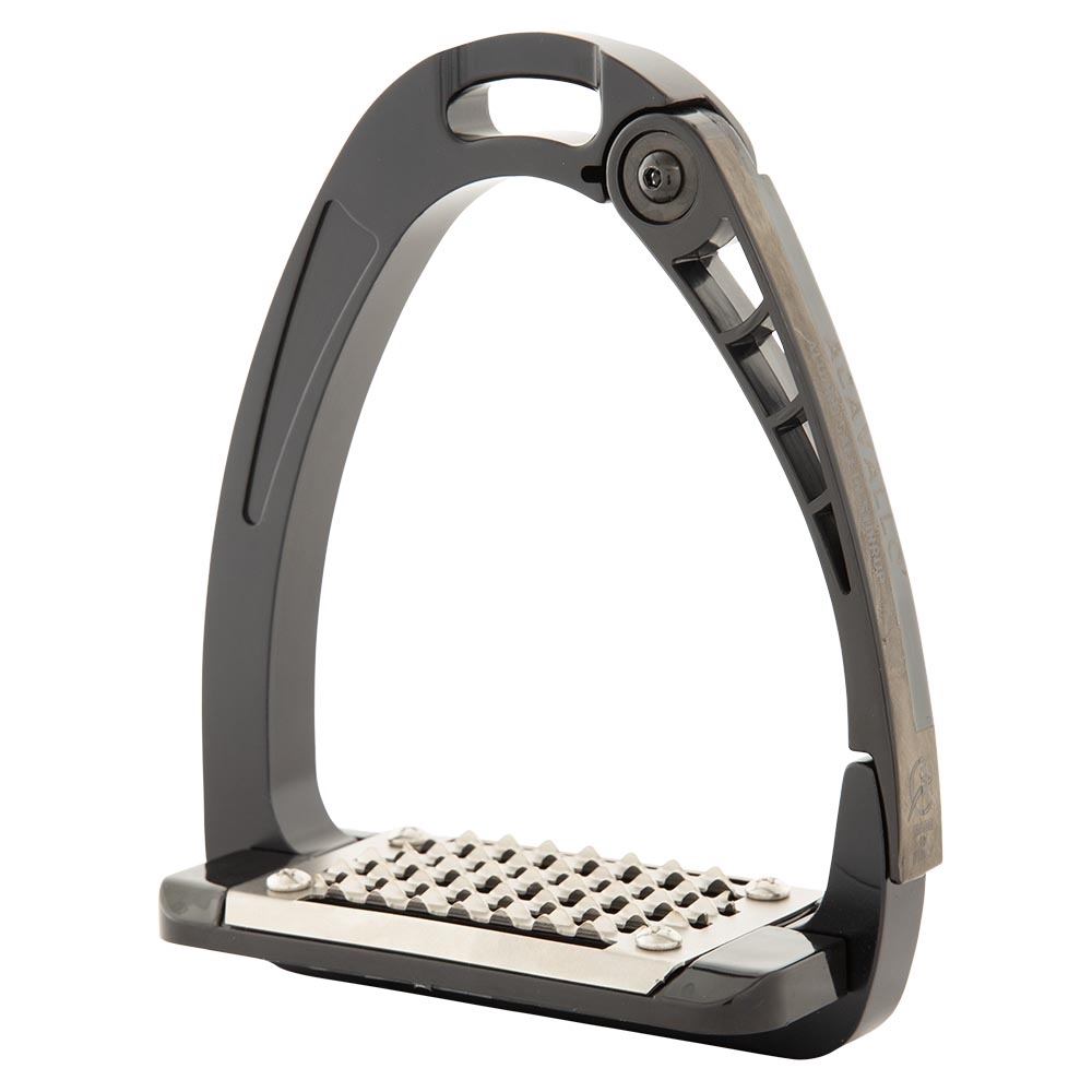Acavallo Arena Alupro stijgbeugel junior is een veiligheidsstijgbeugel voor kinderen, gemaakt van lichtgewicht Alupro aluminium met een flexibele buitenkant van polyamide, die opent in geval van een val. De stijgbeugelzool is gemaakt van roestvrij staal en is antislip. De stijgbeugel heeft een schuine opening bij de stijgbeugelriemen, wat zorgt voor een goede stijgbeugelpositie en de voet in de juiste positie houdt.