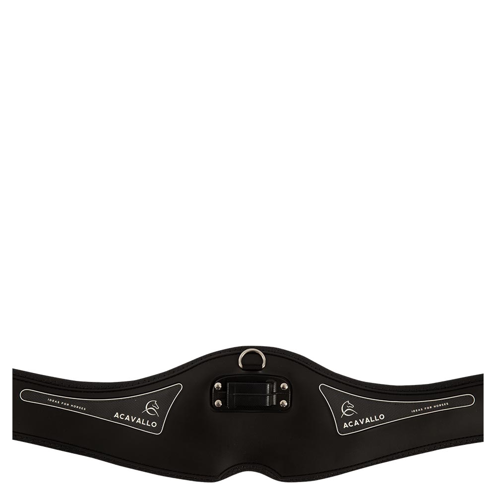 De Acavallo Comfort Gel singel is anatomisch ontworpen met luchtcirculerende gelvulling, die maximale comfort voor het paard garandeert. Het verdeelt de druk gelijkmatig over de buik, biedt betere bewegingsvrijheid en vermindert warmteopbouw. Het middengedeelte heeft elastische inzetstukken aan beide uiteinden, een centrale D-ring en een gepatenteerde veiligheidshaak voor het bevestigen van hulpteugels zonder extra gespen.