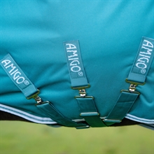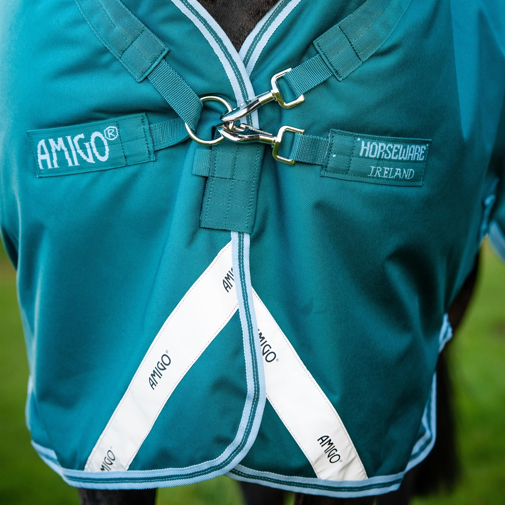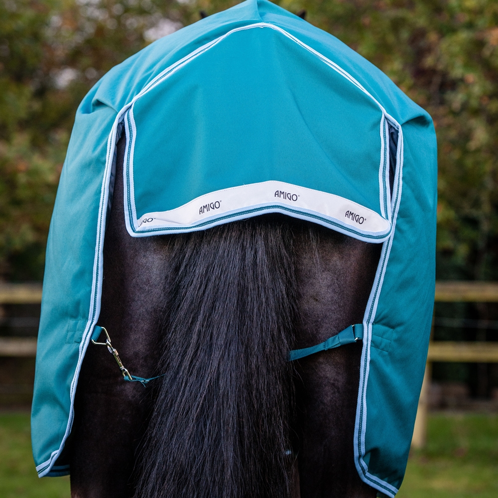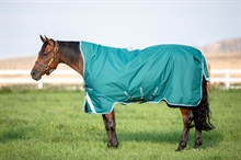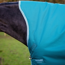 De halfhoge hals zorgt voor een andere pasvorm, die bijzonder goed is voor smalle paarden, omdat de hoge hals een strakkere pasvorm biedt. Het deken is gemaakt van 1200 denier speciaal geweven nylon aan de buitenkant, is waterdicht en ademend.