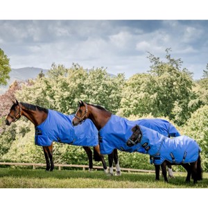 De deken heeft een 600 denier ripstop buitenkant, is waterdicht en ademend en heeft een dubbele voorsluiting, twee kruissingels en een staartriem.
