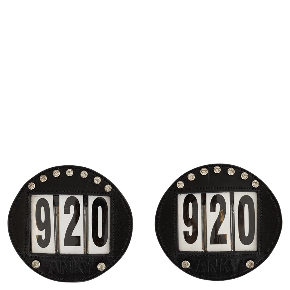 ANKY leren wedstrijdnummer dat met een klittenbandriem aan het hoofdstel of zadeldek wordt bevestigd.