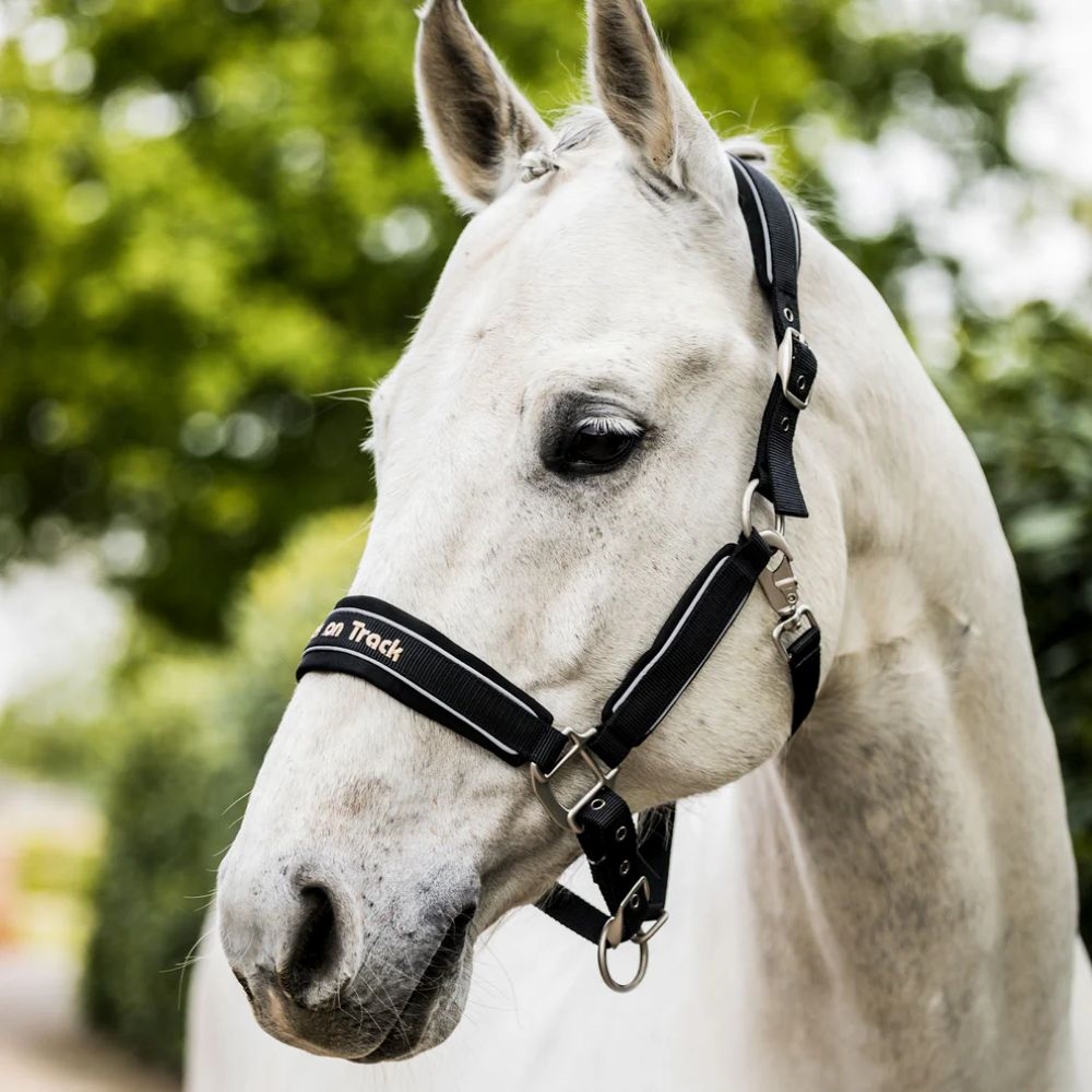 Elegant halster met reflecterende details voor extra zichtbaarheid. Zacht en dempend schuim voorkomt schuren in de nek en zijkanten en over de neusbrug.