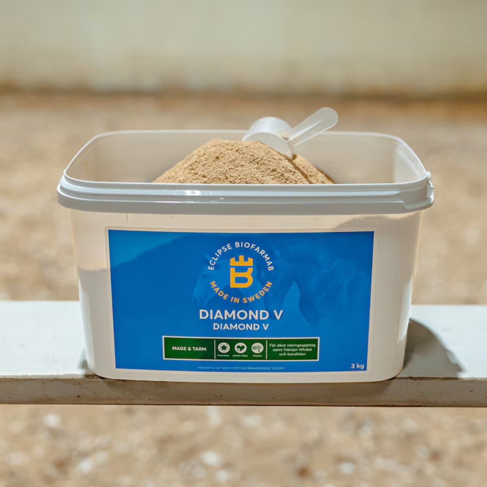 Diamond V voedt de gunstige micro-organismen in de dikke darm van het paard en versterkt daarmee de eigen microflora van het paard, in plaats van nieuwe gist toe te voegen. Wetenschappelijke onderzoeken tonen aan dat Diamond V de voerbenutting kan verbeteren en het melkzuurgehalte in het bloed kan verlagen, wat het algemene welzijn en de prestaties van het paard ondersteunt.