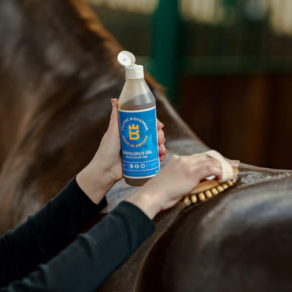 De gel geeft warmte aan de spieren en gewrichten en kan preventief worden gebruikt om stijfheid te verminderen en de beweeglijkheid bij oudere paarden te stimuleren.