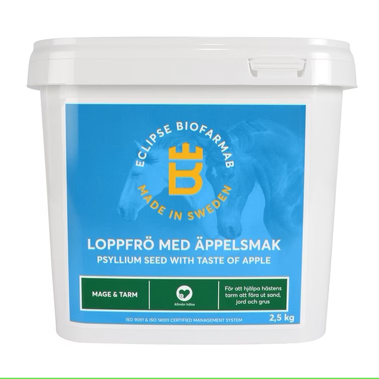 Sommige paarden kunnen kieskeurig zijn en weigeren de smaak of geur van gewone vlozaad. Daarom heeft Eclipse Biofarmab een variant ontwikkeld met natuurlijke appelsmaak – zonder toegevoegde suiker.