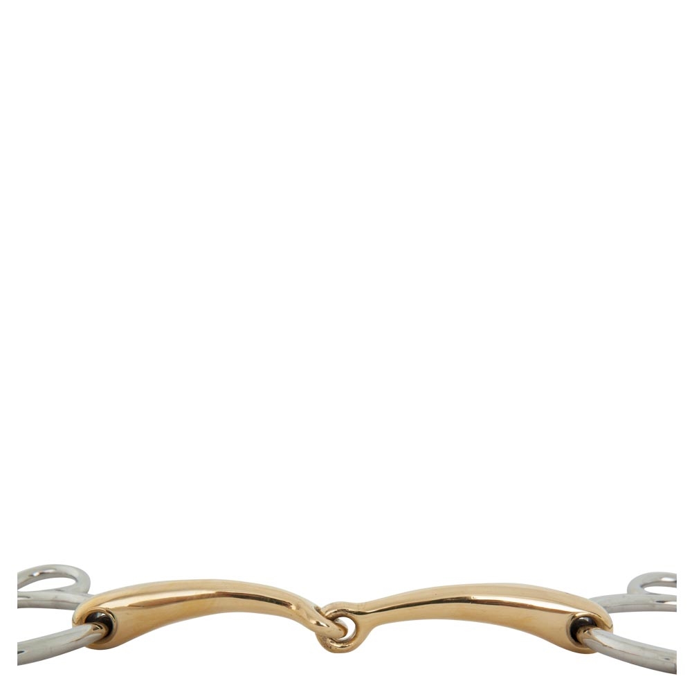 Het bit is anatomisch gevormd, zodat het natuurlijk de vorm van de paardenmond volgt en een zachte en gelijkmatig verdeelde druk in de mond van het paard geeft.