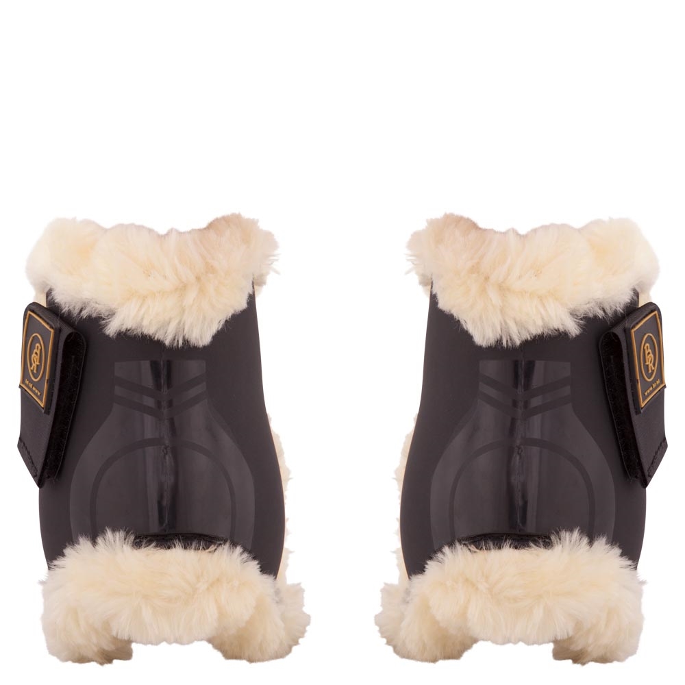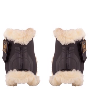 Super fijne beschermers met synthetisch lamswol en een schaal van polyurethaan, evenals schokabsorberende gel-inzetstukken aan de achterkant, die zich vormen naar het paardenbeen voor optimale bescherming.