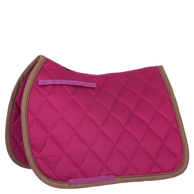 De onderlegger is versierd met één of twee biezen en heeft een verstelbare zadelriem met klittenbandsluiting.