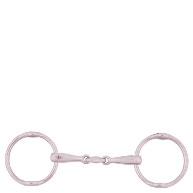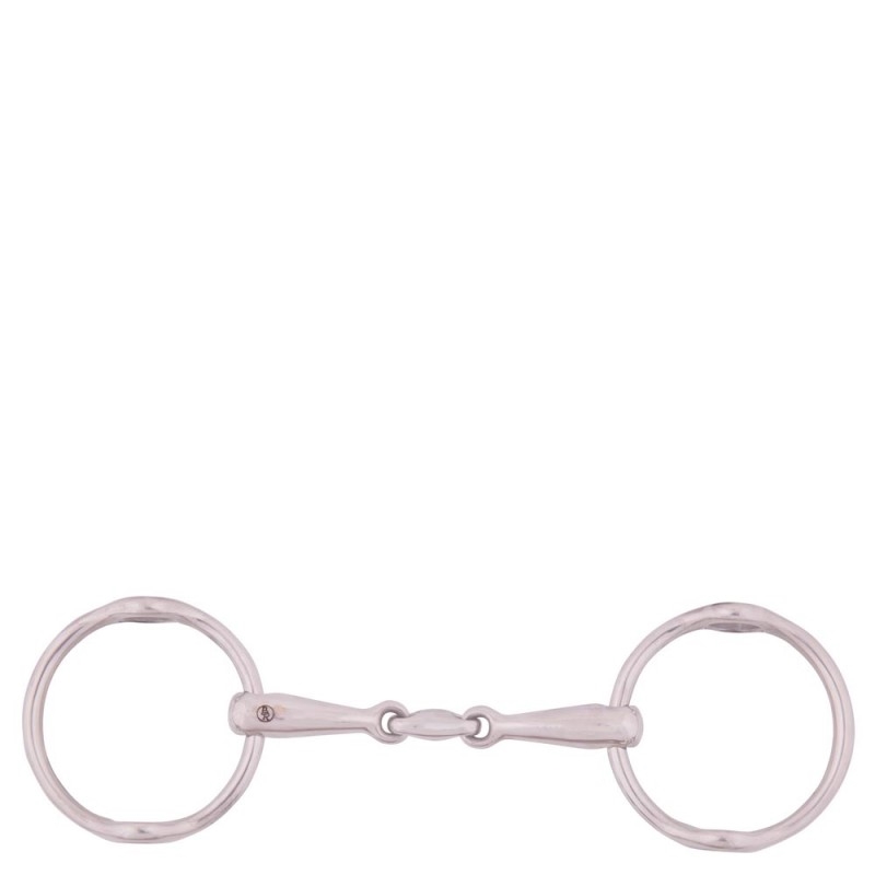 BR. Gag bit, 18 mm dik driedelig bit, ringen met een diameter van 75 mm.