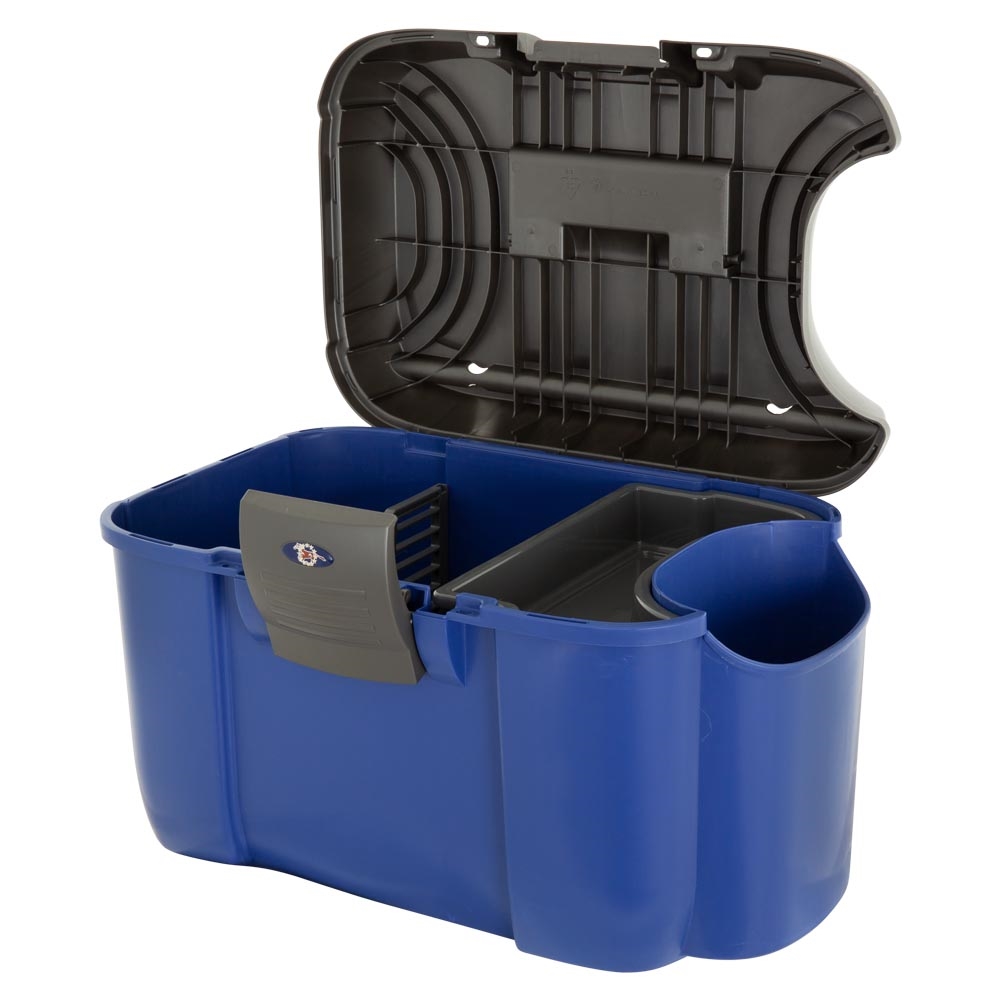 BR Grooming Box Koala is een slimme, robuuste en ruime poetstas, perfect voor het opbergen van al je poets- en verzorgingsspullen – zowel in de stal als op wedstrijden. De kist is ontworpen met focus op functionaliteit en duurzaamheid, en het deksel kan tot 120 kg dragen, waardoor het geschikt is als zitkruk.