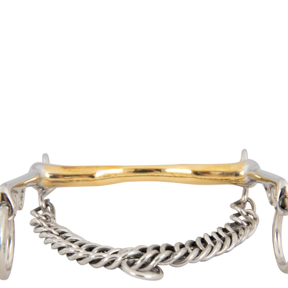 Het anatomische ontwerp van het bit volgt de vorm van het paard, wat zorgt voor een lichte en gelijkmatige drukverdeling. Het ontwerp, gecombineerd met de unieke eigenschappen van Cuprigan, bevordert het kauwproces en de speekselproductie, wat een aangename verbinding met de gevoelige paardenmond mogelijk maakt.