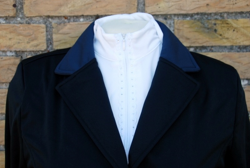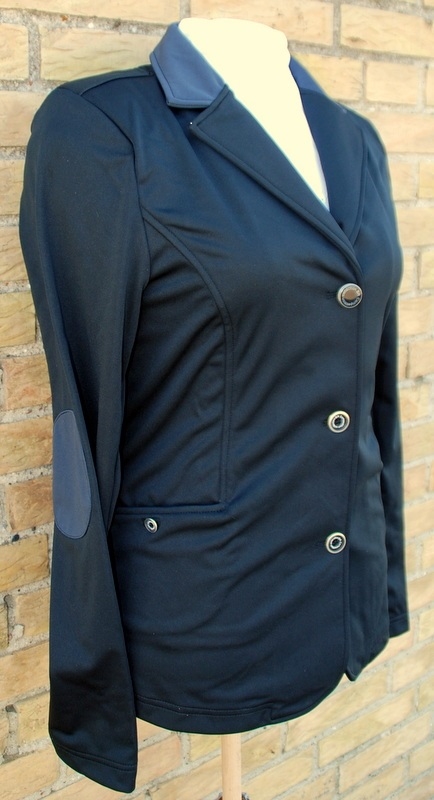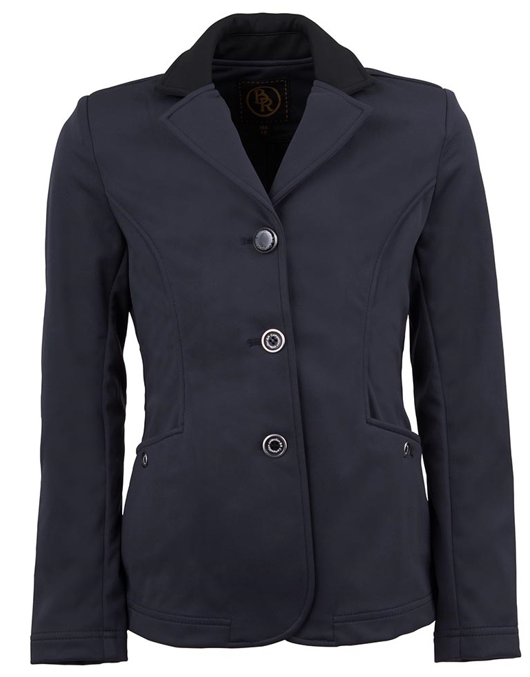 Stijlvolle wedstrijdjas met twee rijopeningen aan de achterkant. De wedstrijdjas is gemaakt van zeer comfortabel stretchmateriaal, waterafstotend en heeft een contrasterende kleur bij de kraag en ellebogen.