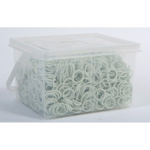Handige kleine opbergdoos met ca. 2.500 manenelastieken.