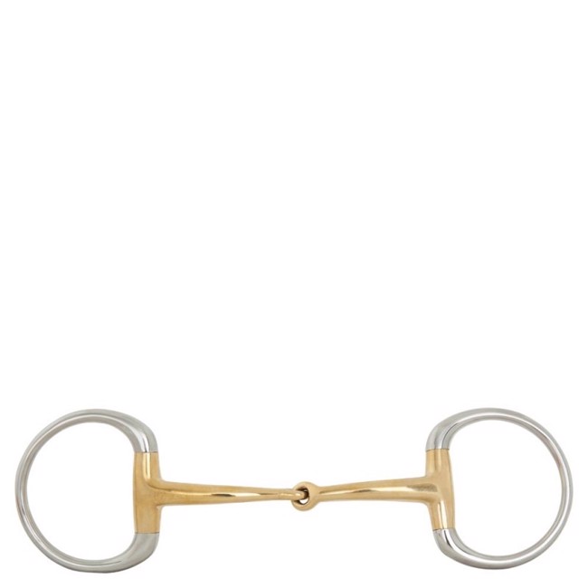 Hoogwaardige 2-delige muffebit gemaakt van solide Cuprigan met ring van roestvrij staal. Cuprigan is een legering bestaande uit 89% koper, 7% aluminium, 3% ijzer en 1% zink. Het oxidatieproces van het materiaal geeft een aangename geur en smaak. Het anatomische ontwerp van het bit volgt de vorm van het paard, wat zorgt voor een lichte en gelijkmatige drukverdeling. Het ontwerp, gecombineerd met de unieke eigenschappen van Cuprigan, bevordert het kauwproces en de speekselproductie, wat een aangename verbinding met de gevoelige paardenmond mogelijk maakt. Het bit geeft lichte druk in de mond. Mondstukdikte 14 mm, ringmaat 65 mm. Verkrijgbaar in maten: 11,5 - 12,5 - 13,5 cm