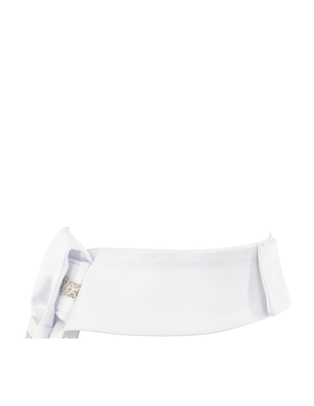 Elegante plastron gemaakt van glanzend polyester satijn, versierd met zilverkleurige strass-steentjes voor een stijlvolle en professionele wedstrijdlook. De dubbelgevouwen constructie zorgt voor een klassieke uitstraling, en een subtiel geborduurd BR-logo in zilver maakt het ontwerp compleet. De plastron heeft een praktische klittenbandsluiting aan de achterkant voor eenvoudig aan- en uittrekken.