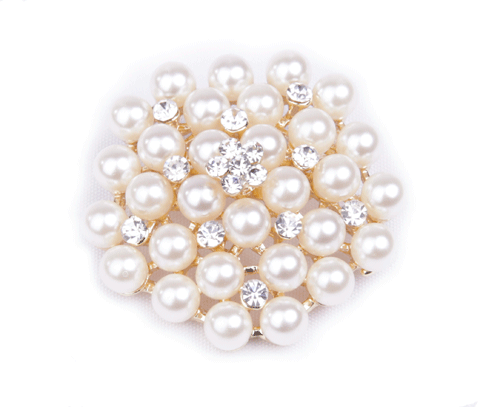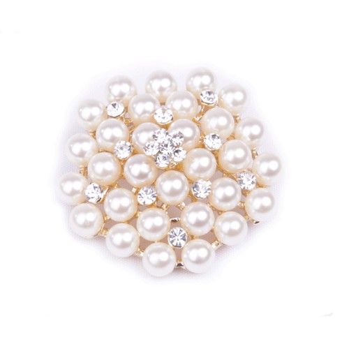 Elegante plastronspeld met imitatieparels en diamanten op een rozet.
