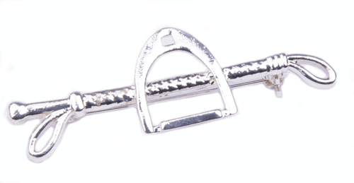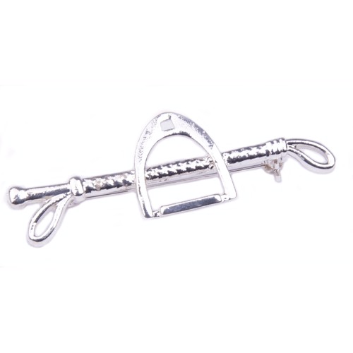 Mooie plastronspeld met stijgbeugel en zweep. Eenvoudig vast te maken met brochesluiting.