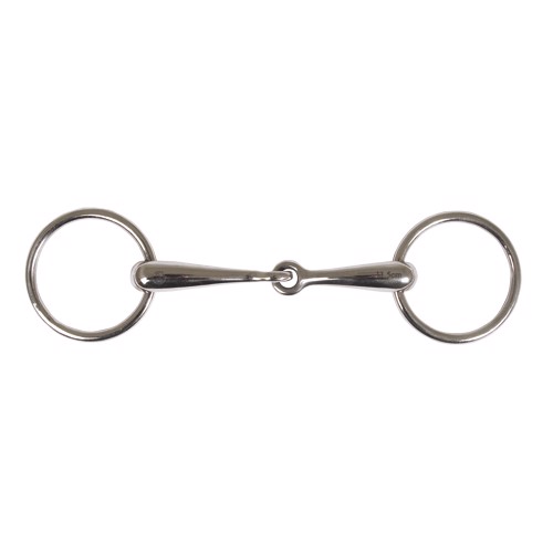 Het tweedelige mondstuk biedt een flexibelere invloed in de mond, terwijl losse ringen zorgen voor vrije beweging en verhoogde acceptatie bij het paard. Met een dikte van 14 mm en 5,5 mm ringdikte is het bit comfortabel en gemakkelijk in gebruik.