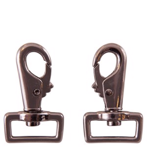 De snaphook is verkrijgbaar in verschillende mooie afwerkingen, zodat deze gemakkelijk kan worden afgestemd op de overige beslag van de deken. De afbeelding toont de snaphook van beide zijden voor een duidelijke weergave van het ontwerp.
