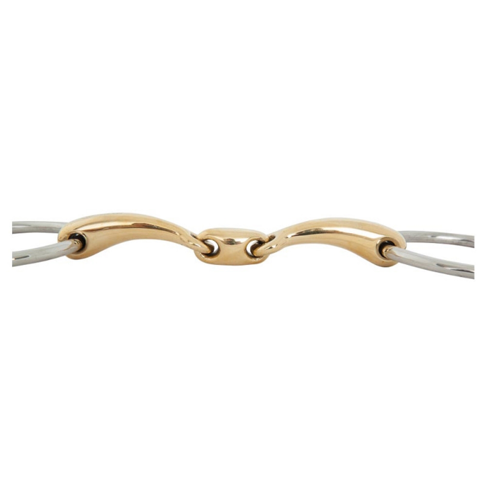 Het 3-delige mondstuk volgt de natuurlijke vorm van het paard en zorgt voor een gelijkmatige drukverdeling, waardoor het bit bijzonder geschikt is voor gevoelige paarden die behoefte hebben aan een milde en stabiele aanleuning.