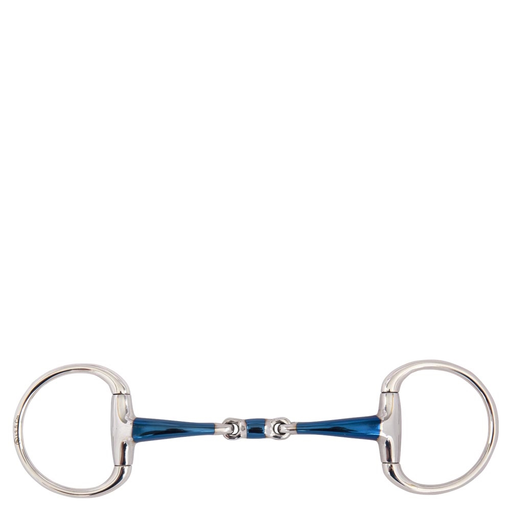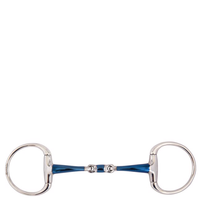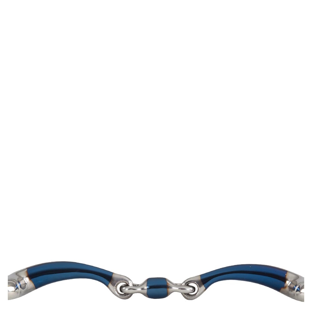 Deze drievoudig gebroken bustrens is anatomisch gevormd en combineert roestvrij staal met een laag Sweet Iron op het mondstuk. Sweet Iron reageert met vocht, warmte en lucht, wat een lichte oppervlakteroest met zoete smaak creëert, die het kauwproces en de speekselproductie stimuleert, wat helpt het paard het bit beter te accepteren. De blauwe kleur op het mondstuk verdwijnt na verloop van tijd, maar de zoete smaak blijft.
