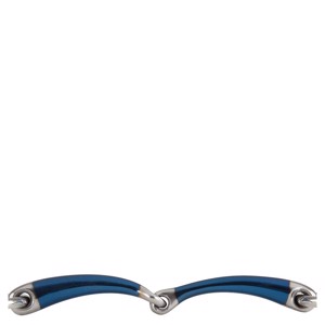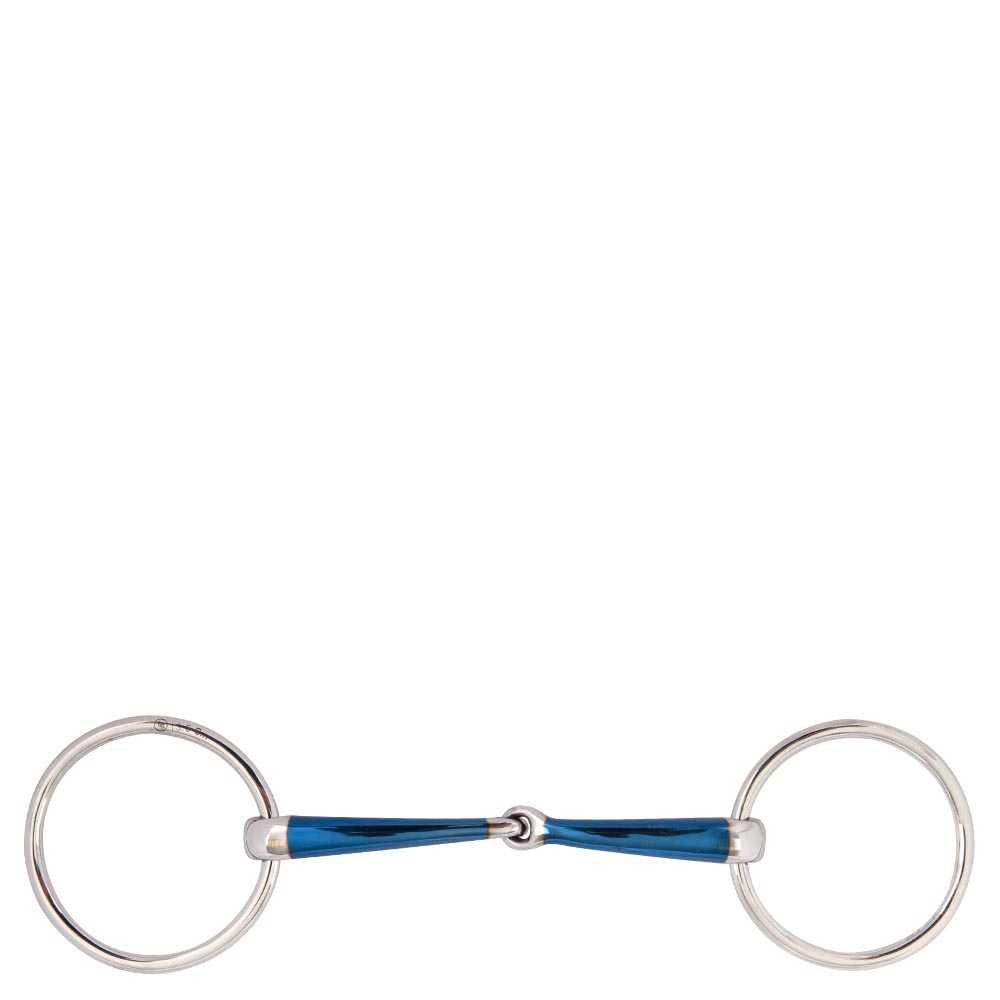 Deze tweedelige trens van BR is gemaakt van roestvrij staal gecombineerd met een laag Sweet Iron op het mondstuk. Wanneer het materiaal reageert met vocht, warmte en lucht, ontstaat er een lichte oppervlakteroest die een zoete smaak geeft, die het kauwproces stimuleert en de speekselproductie verhoogt – iets waar de meeste paarden positief op reageren.