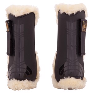 Super fijne voorbeengamaschen met synthetisch lamswol en een schaal van polyurethaan, evenals schokabsorberende gel-inzetstukken aan de achterkant, die zich vormen naar het paardenbeen voor optimale bescherming.