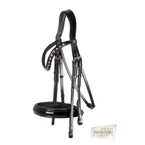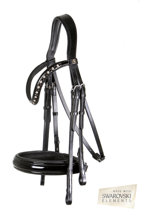 - Gebogen frontriem, met lakleer, SWAROVSKI ELEMENTS en zachte lederen voering