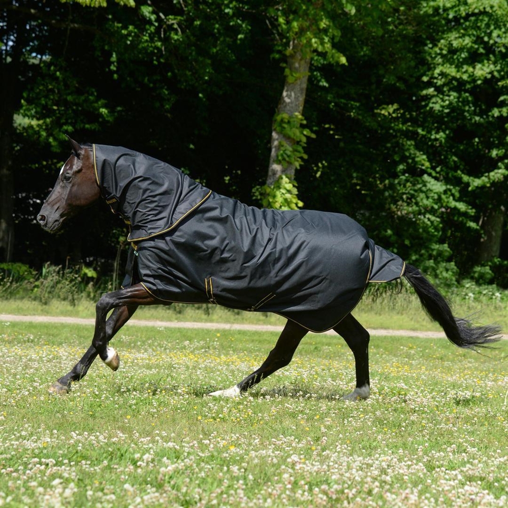 De deken is gemaakt van supersterke 1200 denier rip-stop stof, die met Teflon gecoat, waterdicht en tegelijk ademend is. Zo blijft je paard droog en comfortabel, zelfs tijdens regenachtige en winderige periodes.
