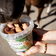 De snoepjes zijn verpakt in een praktische emmer van 1,2 liter, zodat je in de stal altijd voldoende lekkere snacks bij de hand hebt.