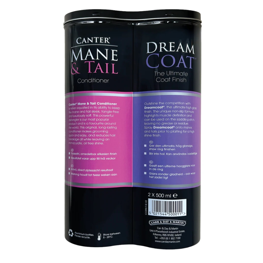 Met CANTER® Mane & Tail en DREAMCOAT® blijft het paard zijdezacht, glanzend en goed verzorgd van kop tot staart. De producten geven een professionele afwerking en een frisse, aangename geur die de perfecte uitstraling compleet maakt.