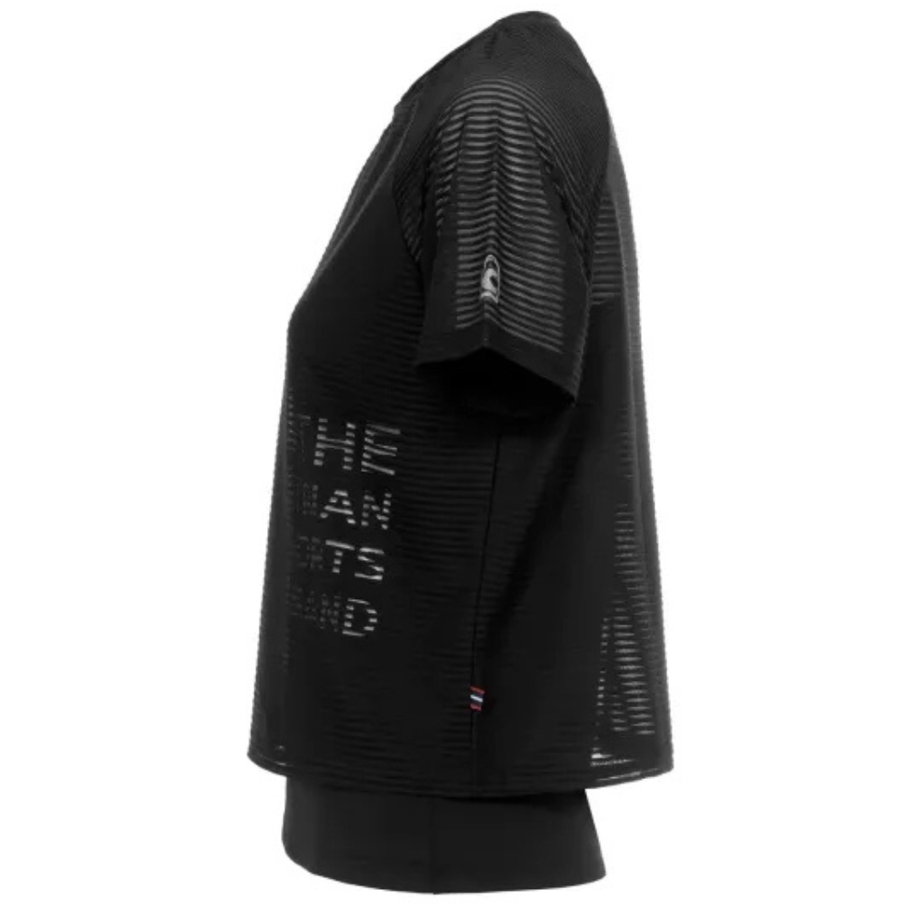 Cavallo Double Layer T-shirt is een sportief en modern trainingsshirt met een stijlvol laag-op-laag design. Het korte T-shirt met korte raglanmouwen heeft een licht transparante, gestreepte look, wat zorgt voor een elegante en functionele uitstraling.
