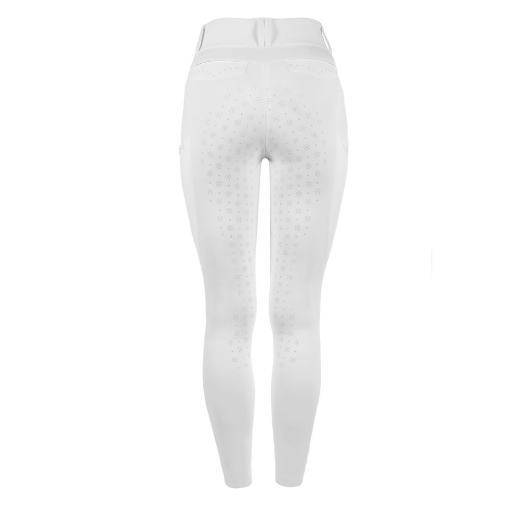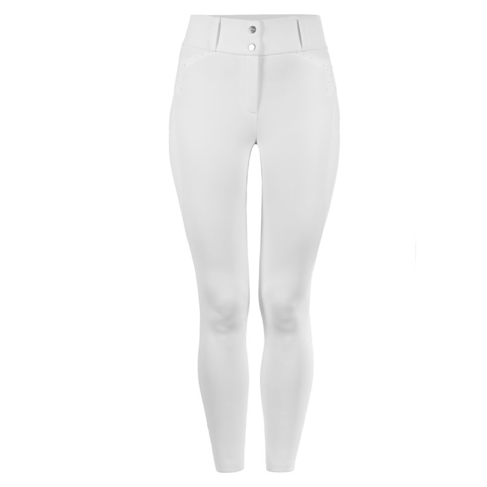 De rekbare kwaliteit met 75% polyamide en 25% elastaan zorgt voor optimale bewegingsvrijheid en een perfecte pasvorm in het zadel. De subtiele grip-details geven stabiliteit, terwijl strass-steentjes en fijne borduursels zorgen voor een exclusieve en vrouwelijke touch.