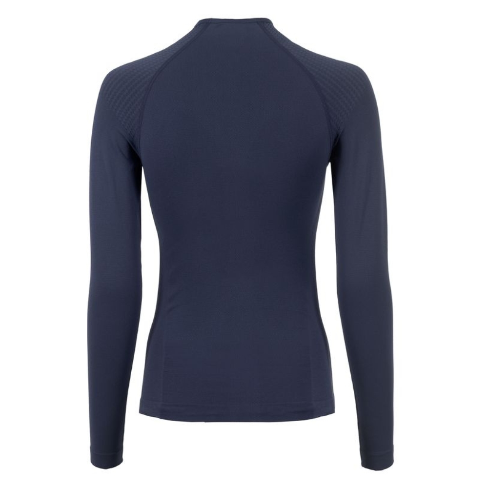 Het shirt is ademend, geurloos, temperatuurregulerend en sneldrogend. Verschillende texturen en compressiezones ondersteunen de spieren en geven dynamische ondersteuning. Het heeft een stijlvolle hoge hals en een discreet Cavallo-stijgbeugel-logo op de linkerborst.