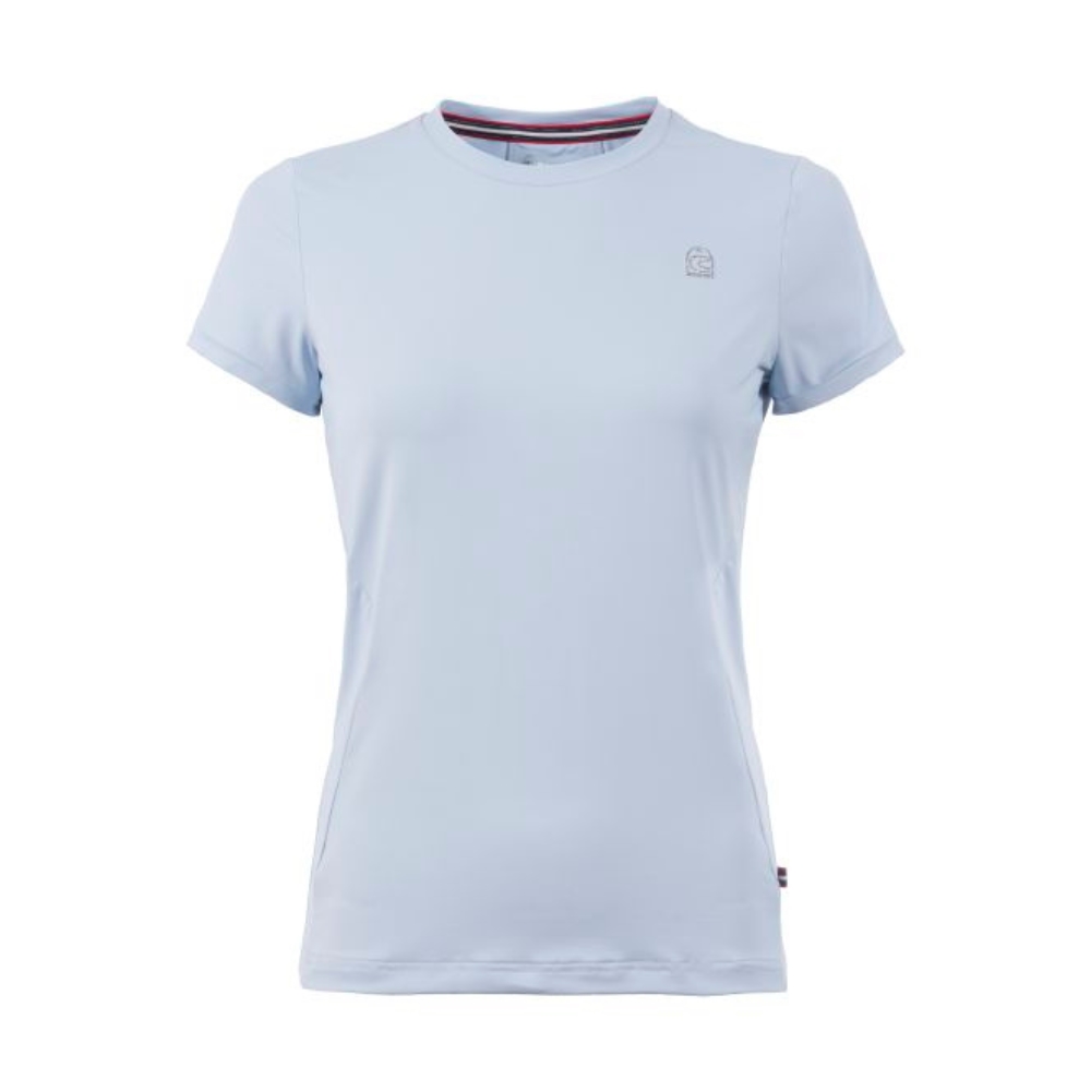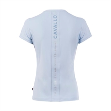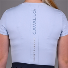 Klein Cavallo glitterlogo op de linkerborst en tekst op de achterkant van de blouse met de tekst "The Equestrian sports brand Cavallo"