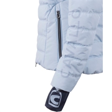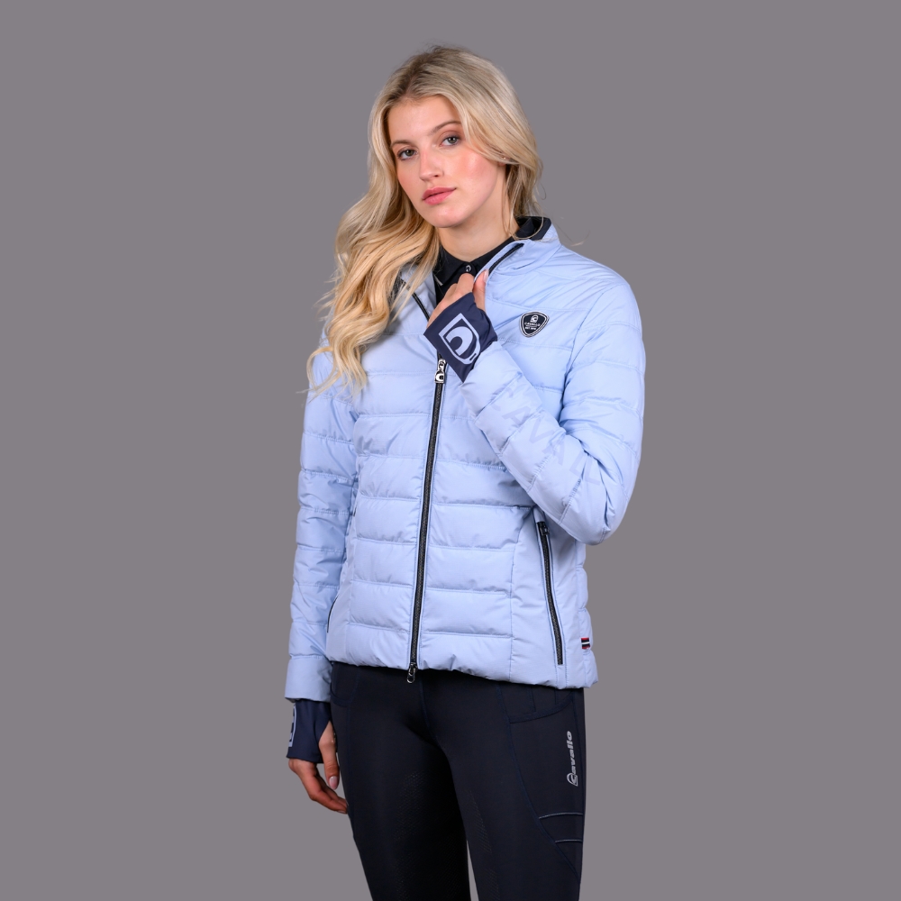 Korte lichtgewicht jas met hoge kraag en synthetische donsvoering.