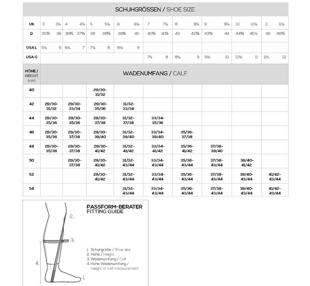 Kies hoogte/kuitbreedte