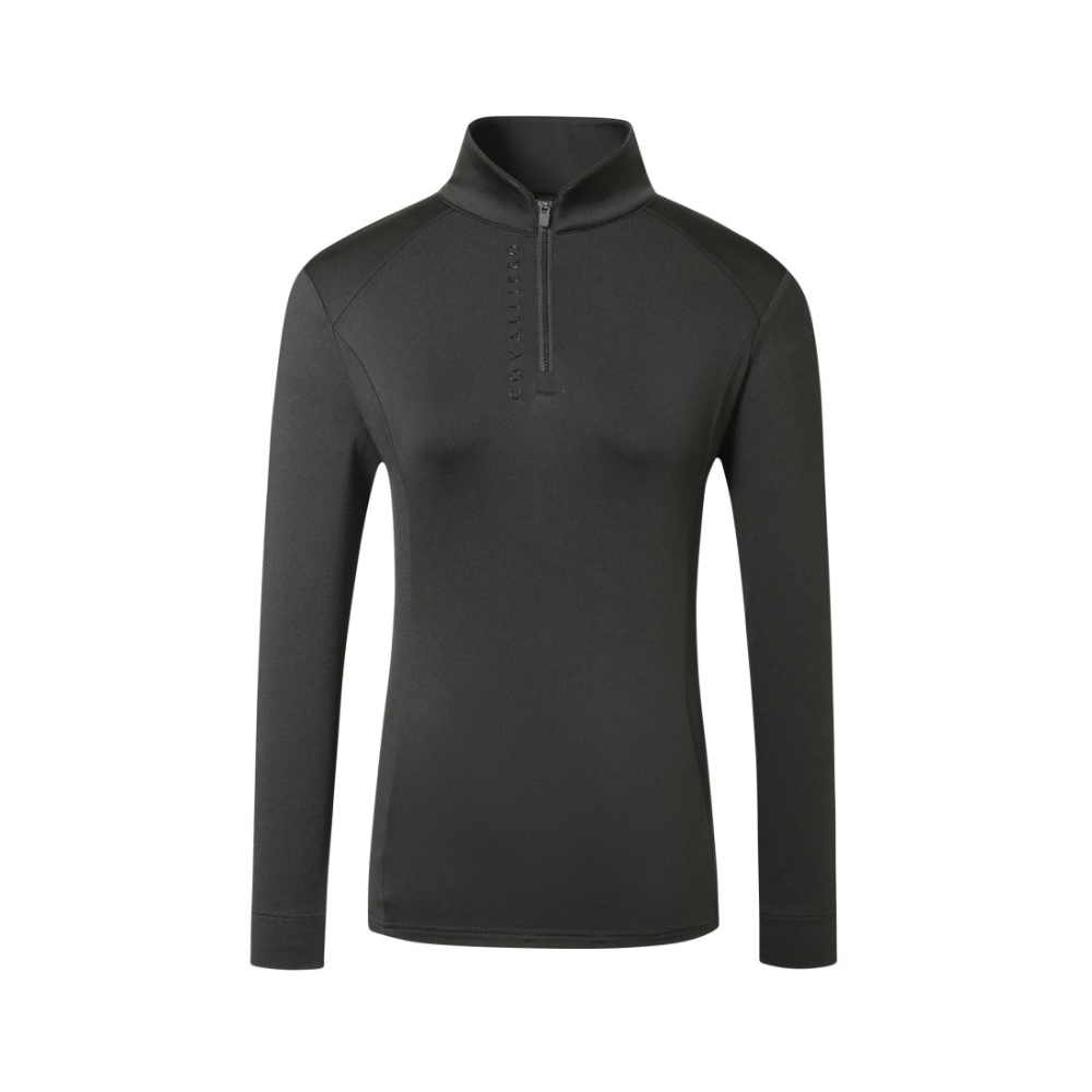 Het elastische materiaal biedt optimale bewegingsvrijheid en een comfortabele pasvorm, terwijl de staande kraag met rits het gemakkelijk maakt om de temperatuur te regelen. Een subtiel Covalliero-logo langs de rits maakt de stijlvolle uitstraling compleet.