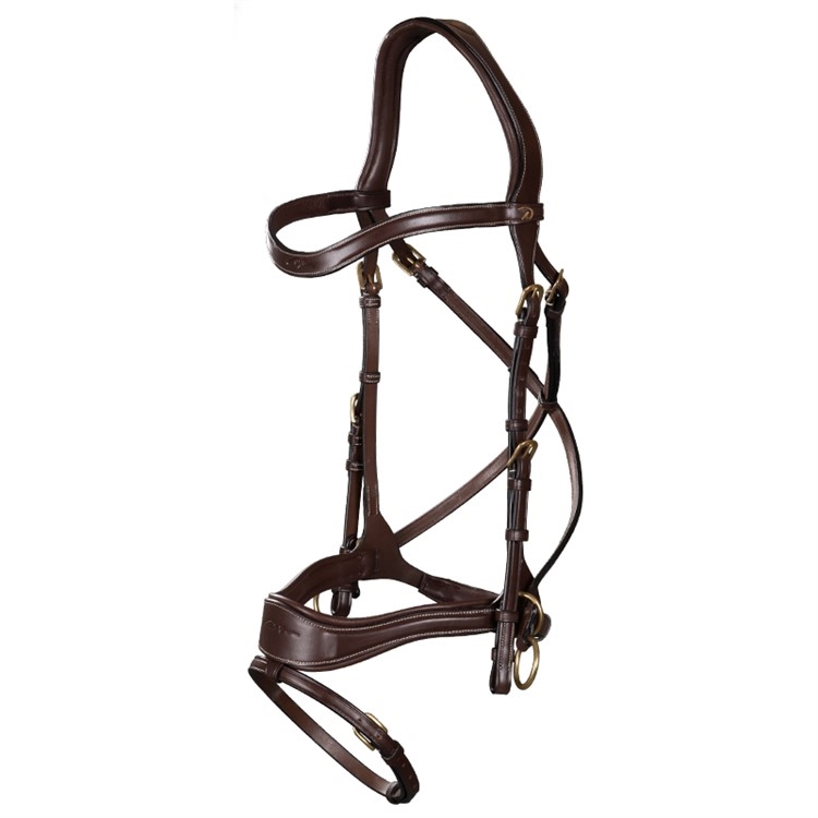 Daarnaast is het hoofdstel voorzien van witte stiksels en messing gespen.