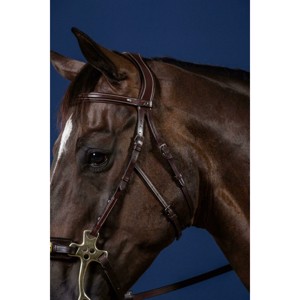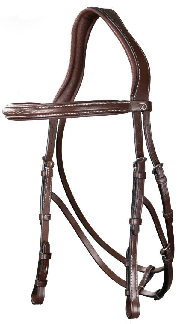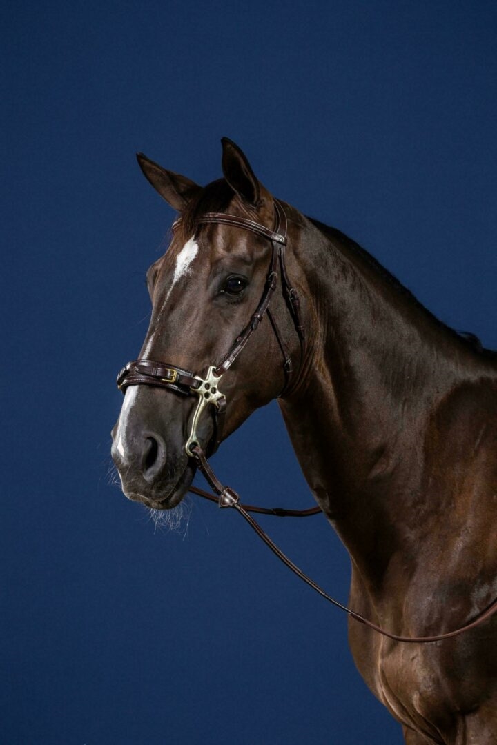Dit prachtige Hackemore hoofdstel is gemaakt van superzacht Spaans leer en combineert zowel comfort als elegantie. Het heeft een verhoogd frontriem met decoratieve stiksels, wat een exclusieve uitstraling geeft. De Hackemore bakstukken hebben een verstelbare kaakriem onder de wangen, die zorgt voor optimale pasvorm en stabiliteit.