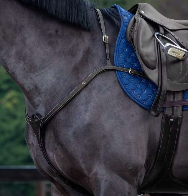 Dyon Long Bridge is een elegant en eenvoudig borsttuig, anatomisch gevormd om maximale schoudervrijheid te garanderen. Het borsttuig is gemaakt van zacht, fijn Spaans leer en is voorzien van duurzame stalen gespen en decoratieve witte contraststiksels voor een stijlvolle uitstraling. Het gladde ontwerp maakt het comfortabel voor het paard en gemakkelijk in gebruik voor dagelijks rijden.