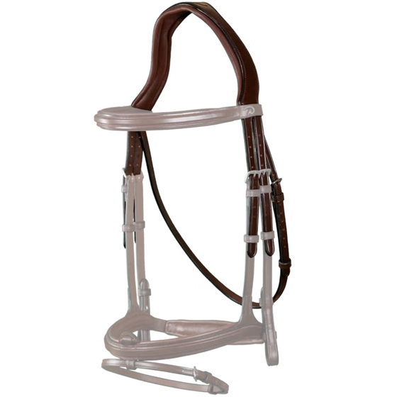 De uitgesproken S-vorm biedt een optimale pasvorm, terwijl de lagere plaatsing van het frontriem de druk bij de basis van het oor vermindert. Het resultaat is comfortabeler hoofdstel dat het welzijn van het paard ondersteunt – zowel bij dagelijks gebruik als bij langere ritten.